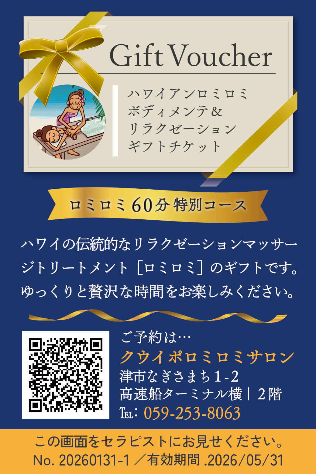 【クウイポロミロミのギフトチケット】大切なあの人の大切な日に癒しのプレゼント