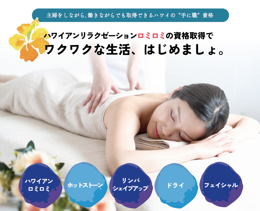 【開業・就職・趣味】ハワイアンロミロミ資格で「ワクワクな生活、はじめましょ。」|三重本校(津市)・日本全国出張レッスン|クウイポロミロミスクール